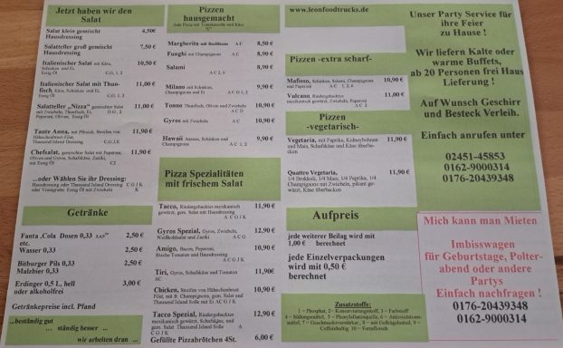 Speisekarte vom Imbiss
