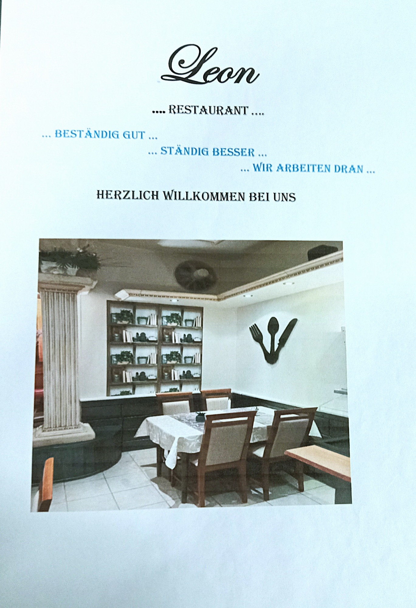 Entdecken Sie die vielfältige Speisekarte des Leon Restaurants, die köstliche Gerichte für jeden Geschmack bietet. Von traditionellen deutschen Klassikern bis hin zu modernen Interpretationen ist für jeden Feinschmecker etwas dabei. Unsere sorgfältig zubereiteten Speisen verwenden frische, regionale Zutaten und bringen den Geschmack Deutschlands direkt auf Ihren Teller. Lassen Sie sich von unseren hausgemachten Spezialitäten verwöhnen – sei es ein herzhaftes Schnitzel oder ein veganes Gericht. Kommen Sie vorbei und erleben Sie kulinarische Höhepunkte in einem einladenden Ambiente.